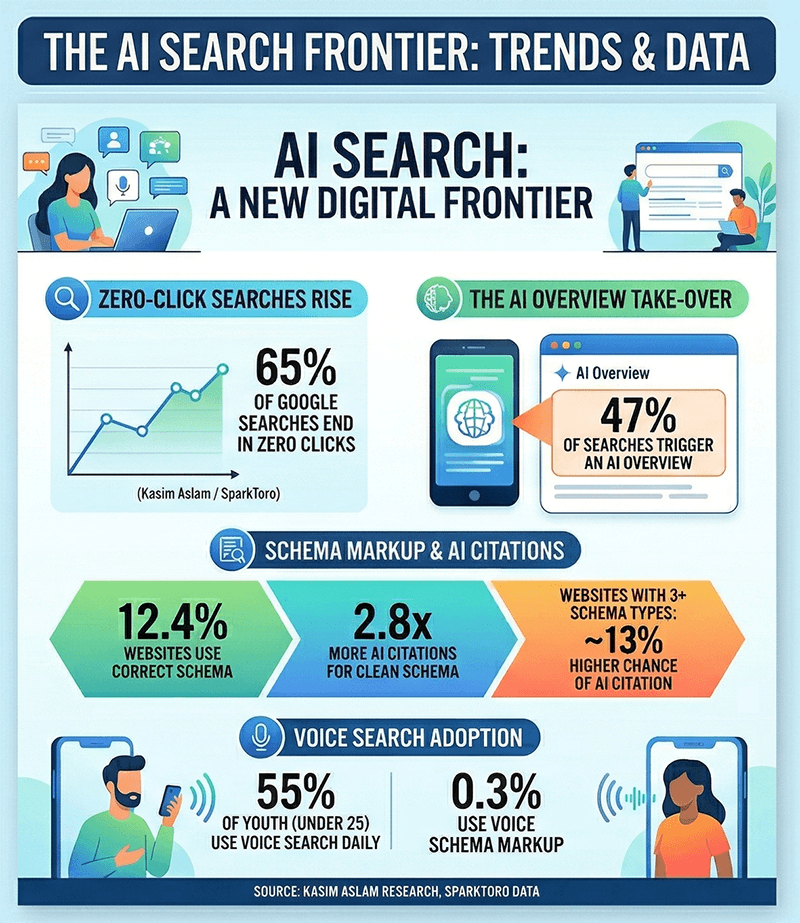 65% of searches already end in zero clicks. That trend accelerates with AI. If you're only measuring traffic, you're measuring a diminishing signal. Start measuring AI citation frequency.